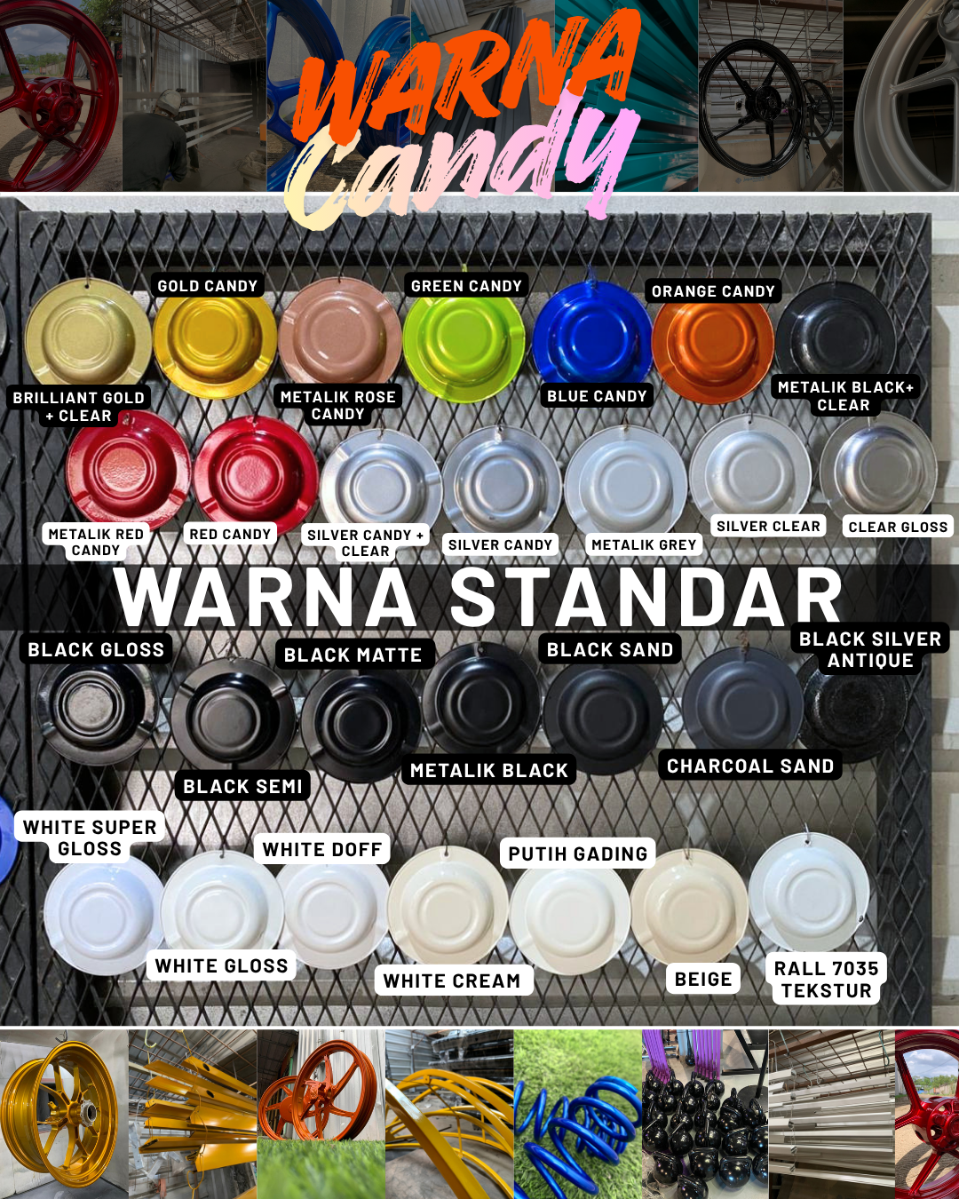 Warna sesuai katalog kami dan untuk harga silahkan chat kami, harga nyaman di dompet dan hasil cat powder coating kualitas premium